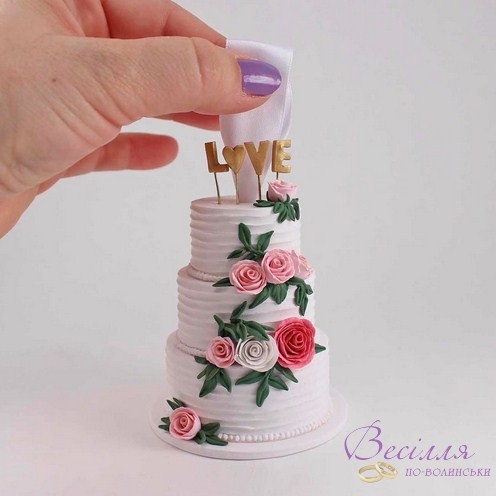 Щоправда, з’їсти таку красу не можна, тому молодощі зроблені з полімерної глини і фарб. Дівчина створює маленькі тортики для того, аби вони стали нагадуванням про щасливу подію.