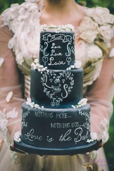 Один з весільних трендів – це торт в стилі chalkboard або, по-іншому, торт з ефектом дошки для крейди.