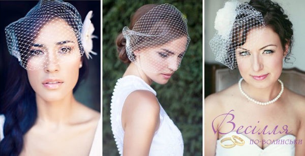 Даний аксесуар являє собою невелику вуаль, яку закріплюють на волоссі замість звичайної фати. Вуалетки для нареченої можуть бути найрізноманітнішими: з квітами, пір’їнами, капелюшками, брошками і навіть дорогцінним камінням.