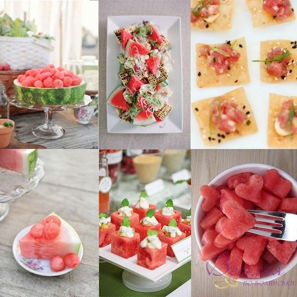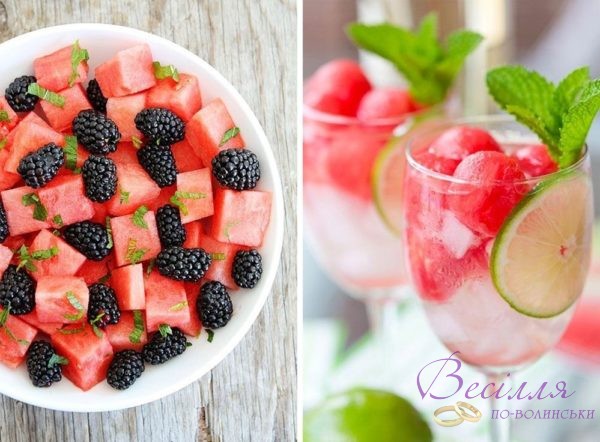 Цікавим та апетитним буде фруктовий стіл. У напоях кавун може слугувати як прикрасою, так і основою – це можуть бути коктейлі, фреші або пунші.