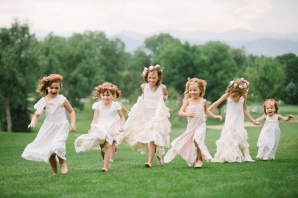 Діток можна залучати не лише до розваг, а й до самої церемонії одруження. Це буде дуже романтично та зворушить усіх присутніх. Дівчатка можуть посипати дорогу перед молодими пелюстками троянд зі спеціальних кошичків, а хтось із хлопчиків піднесе обручки для нареченого на спеціальній подушечці. Якщо у нареченої сукня із довгим шлейформ, дітки можуть його нести.
