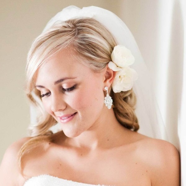 Ідеально підійде фата довжиною до плечей та щоб прикривала боки обличчя спадаючими хвилями.