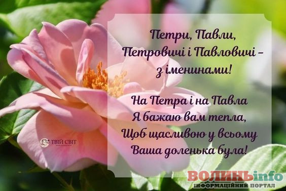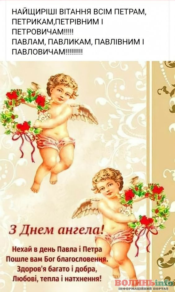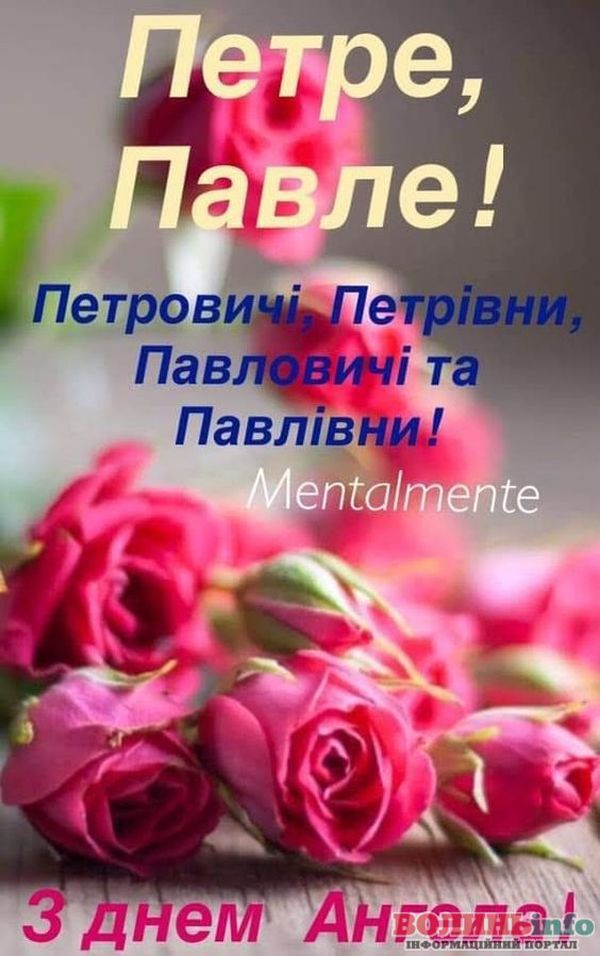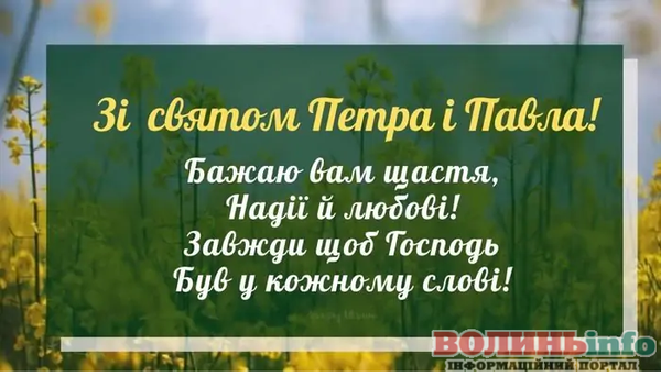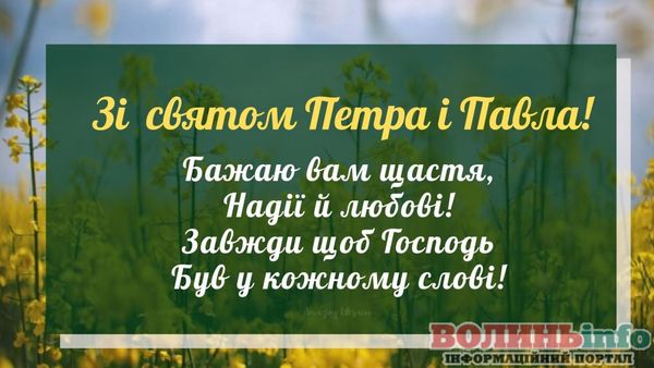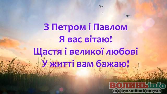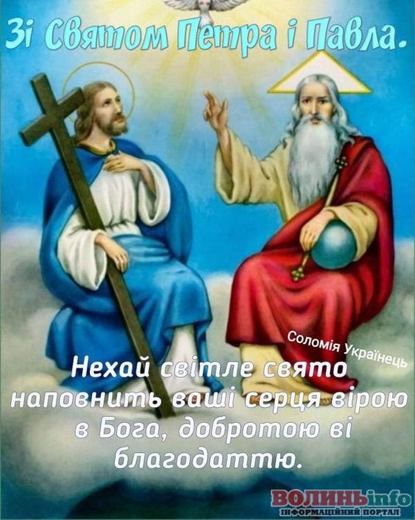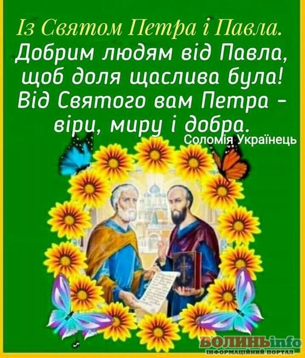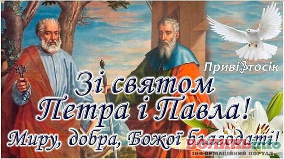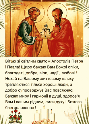 Від щирого серця вітаємо вас із цим великим святом! Бажаю міцного здоров’я, щастя й добробуту. Нехай завжди буде благословенна наша рідна Україна, а свято Петра і Павла ввійде в кожний дім миром, щастям і радістю.