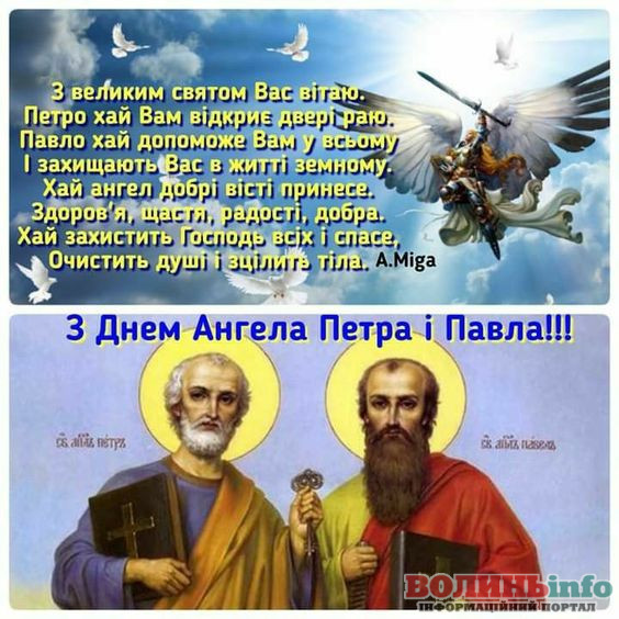 Вітаємо із величним і престольним святом Петра і Павла. Щиро бажамо вам, бажаємо Божої опіки та добра у Ваших родинах, нехай Ваше слово срібними дзвонами будить в людях бажання жити за Заповідями Божими, бути милосердними та любити ближнього свого, як того вимагає син Божий.