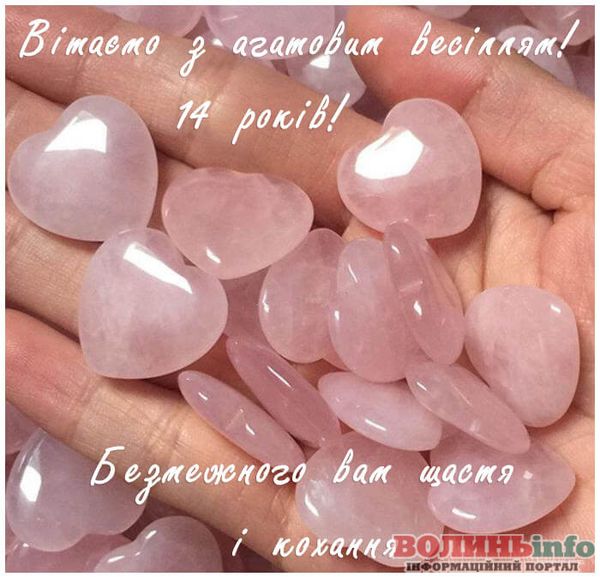 Дата 14 років після одруження називається агатовою весіллям. Кажуть, що цей камінь оберігає від небезпеки того, хто його носить. А якщо це символ річниці весілля, то він буде охороняти сім’ю та побут.