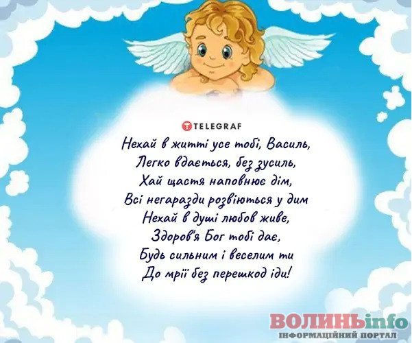 Василю, вітаємо з Днем ангела! Нехай твій небесний охоронець буде поруч у хвилини радості і смутку, кохання і розлучень, щохвилини, щосекунди. Коли Ти впадеш, він – підніме, коли ти заплачеш – втішить, коли ти радітимеш – він разом з тобою радітиме.