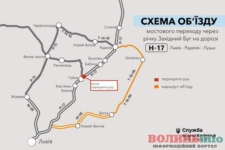 15 грудня перекриють рух автомобільного транспорту через мостовий перехід через річку Західний Буг поблизу с. Гайок на дорозі Н-17 Львів – Радехів – Луцьк.