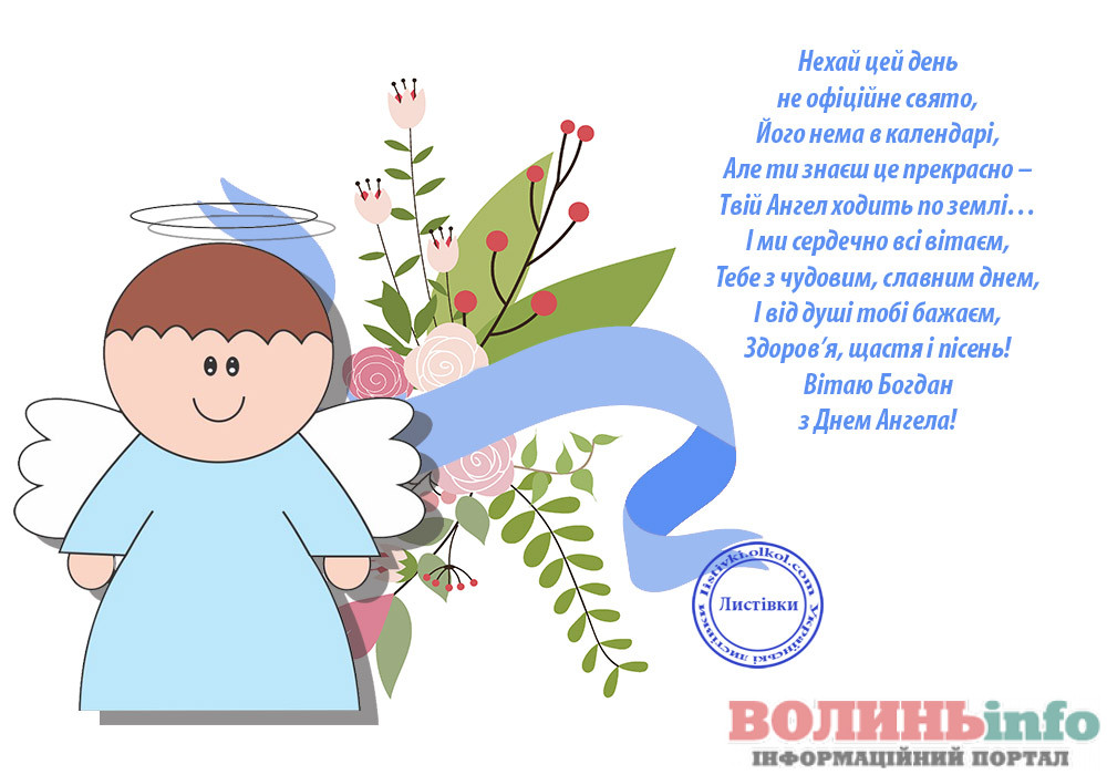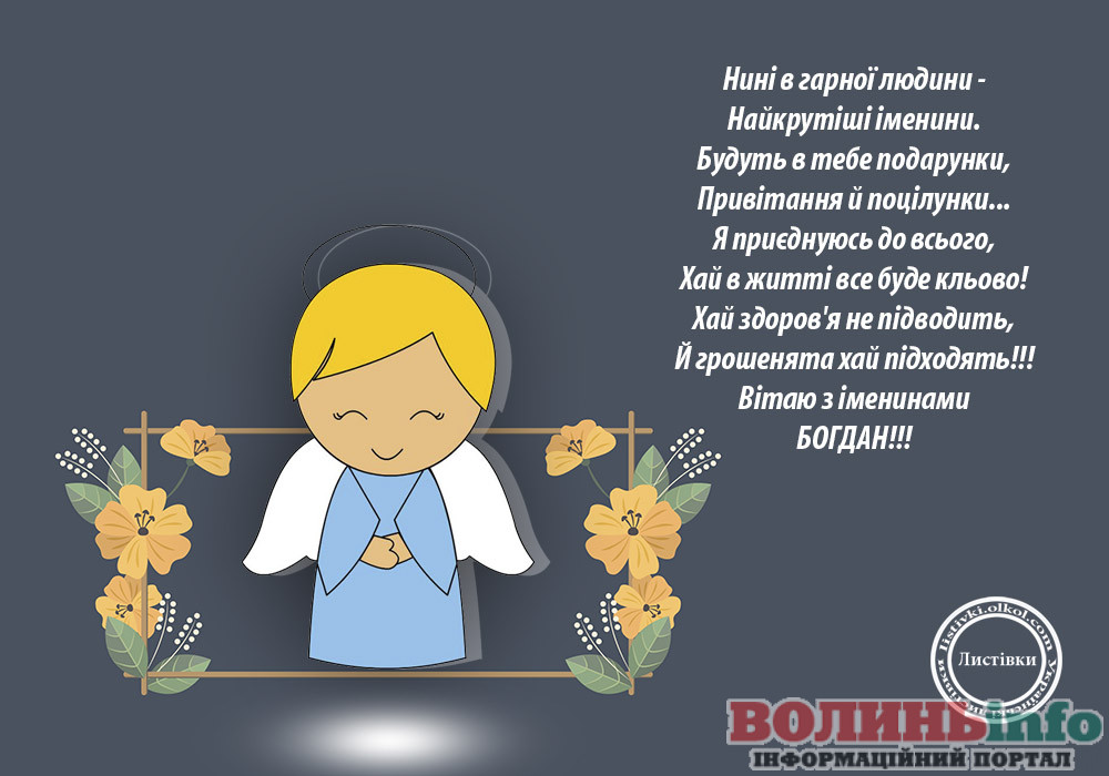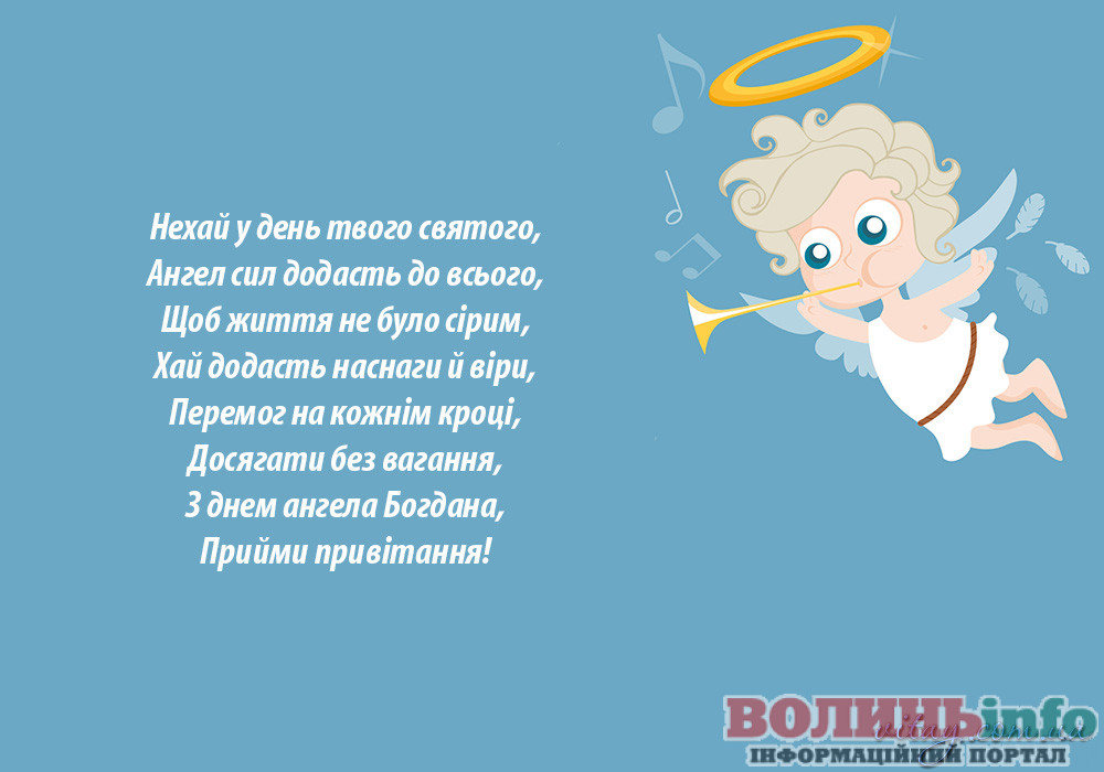 В цей святковий день вітаю Богдана з Днем ангела. Бажаю йому завжди відчувати підтримку свого ангела-хранителя, а також друзів та близьких. Нехай кожен день посміхається доброю звісткою, а ніч знімає всю втому і забирає неприємності.