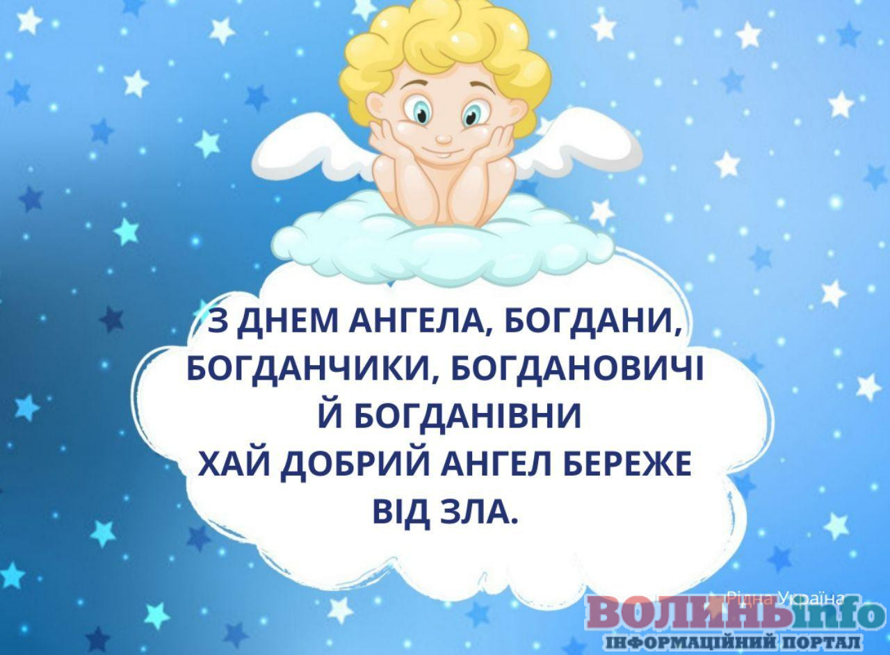 Вітаю з Днем ангела Богдана. Нехай ангел тебе не покидає, нехай удача від тебе не відходить, нехай мужність веде тебе до благородної перемоги. Від щирого серця бажаю здоров’я, любові, благополуччя, миру, радості, міцних сил і першості у всьому. Хай щастить!