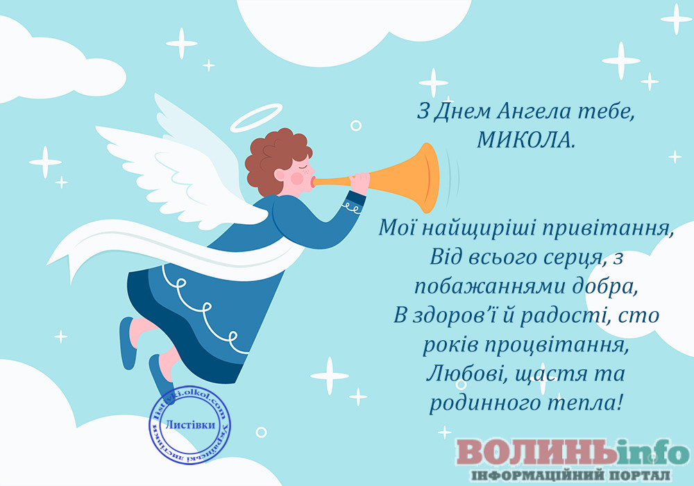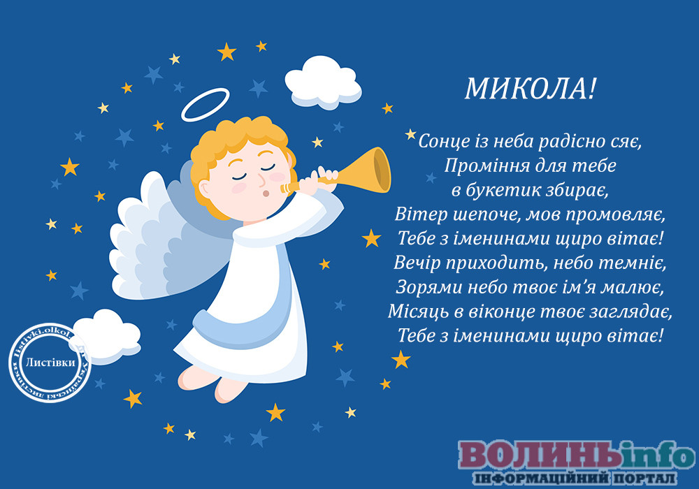 Миколо, вітаю тебе з іменинами! Бажаю тобі богатирського здоров’я та небесного благополуччя. Нехай Святий Миколай принесе в твій дім добро, спокій, гармонію і достаток.