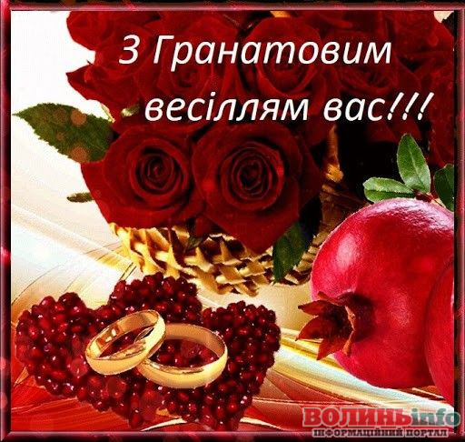 Вітаю чудову подружню пару з 19-річчям, з юним віком мрій і ніжності почуттів. На вашу гранатову річницю хочу побажати завжди впевнено і до кінця боротися за своє щастя, ніколи не залишати одне одного без підтримки і кожен день отримувати від долі стільки приємних подарунків, скільки зерен у соковитому плоді граната.
