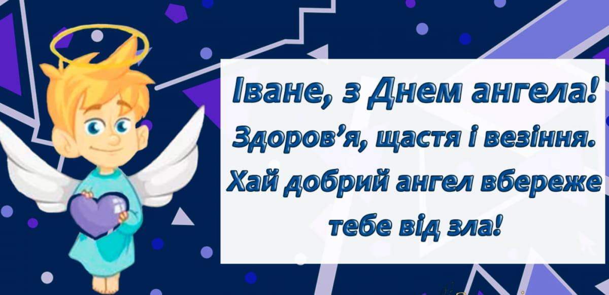 Вітаю тебе, Ваню, з днем Ангела і бажаю, щоб твій ангел завжди тебе оберігав і допомагав тобі в усіх твоїх справах – домашніх і робочих, щоб всі твої починання були втілені в життя, щоб тебе завжди супроводжували удача, процвітання та успіх.