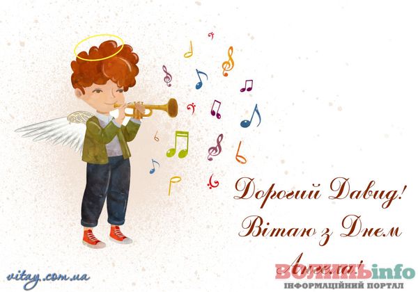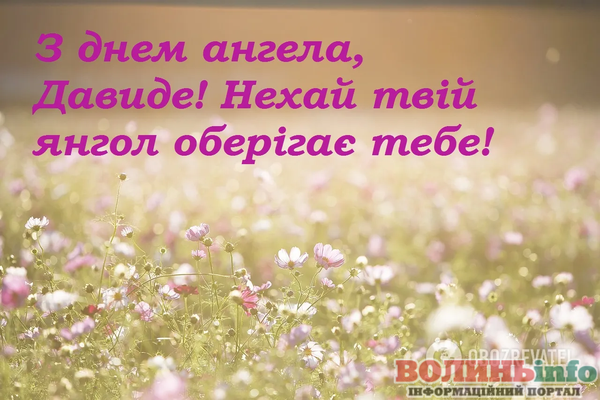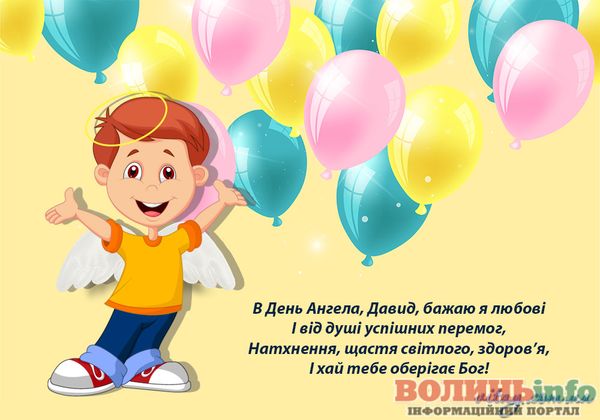 Давид, вітаю тебе з Днем Ангела. Нехай твій ангел-хранитель наділить тебе силою та сміливістю, нехай дасть тобі віру, наполегливість і цілеспрямованість. Бажаю тобі великого і чистого кохання, успіху, і здоров’я!