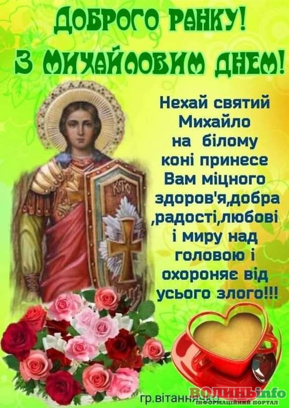 Вітаємо зі святом і бажаємо, щоб архангел Михаїл захищав і підтримував тебе. Нехай кожен день буде вдалим. Щастя тобі і досягнення цілей.