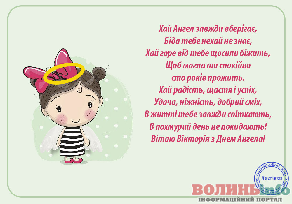 Вітаю з днем ангела, Віко! Нехай твій ангел просвічує тебе на всяк час, хоронить від усього злого і заохочує до добрих діл.