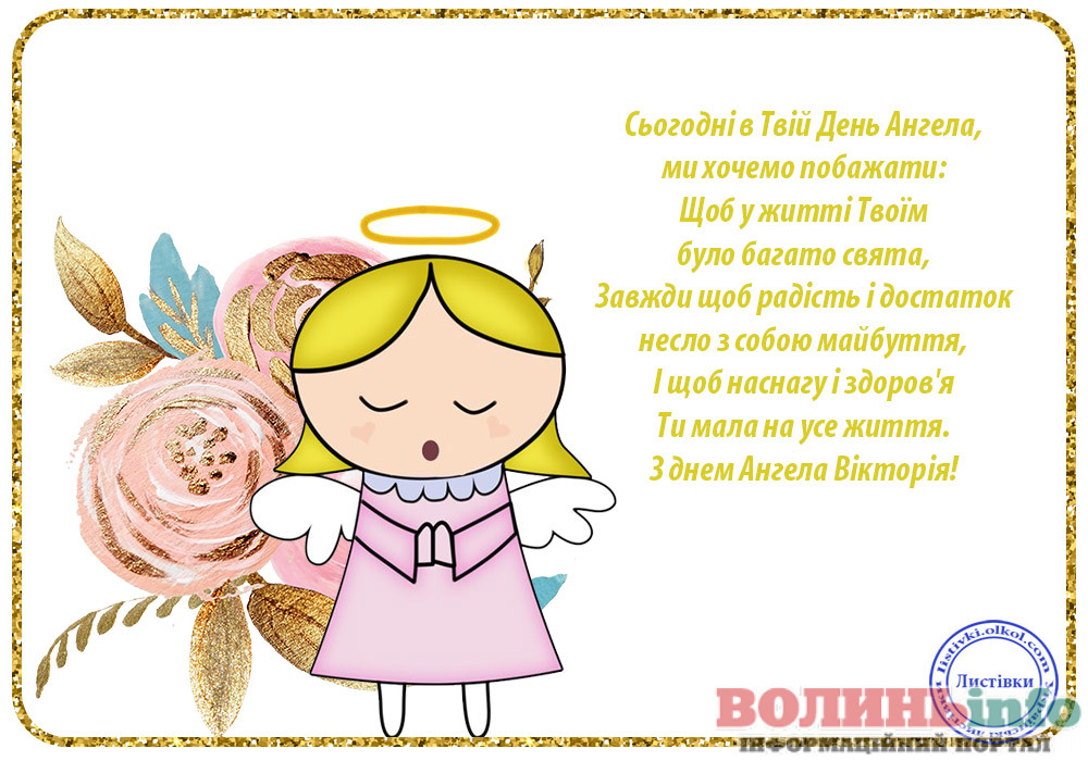 Сьогодні у твій День ангела ми хочемо побажати: щоб свято було в тебе кожного дня, щоб у гаманці був достаток, а на души – задоволення від кожного прожитого дня. Щоб наснаги та здоров’я вистачило на усе життя. Сміливих тобі мрій, Вікторіє, та мудрих рішень!