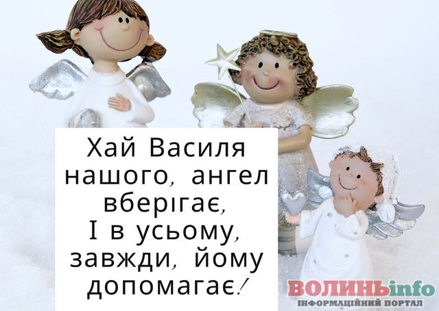 З Днем Василя, друже! У кожного з нас є ангел-охоронець. І хоч ніхто його не бачив, я впевнена, що він завжди знаходиться біля нас. Хочу в цей радісний святковий день побажати тобі і твоєму ангелу побільше сонячних днів, радості в житті й любові до ближнього!