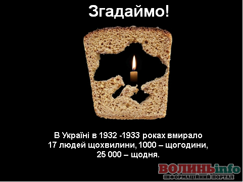 23 листопада о 16:00 відбудеться загальнонаціональна хвилина мовчання, після якої розпочнеться акція «Засвіти свічку пам’яті!». Українці у всьому світі запалюватимуть свічки пам’яті на вікнах чи біля меморіалів Голодомору, вшановуючи пам’ять вбитих комуністичним тоталітарним режимом українців.