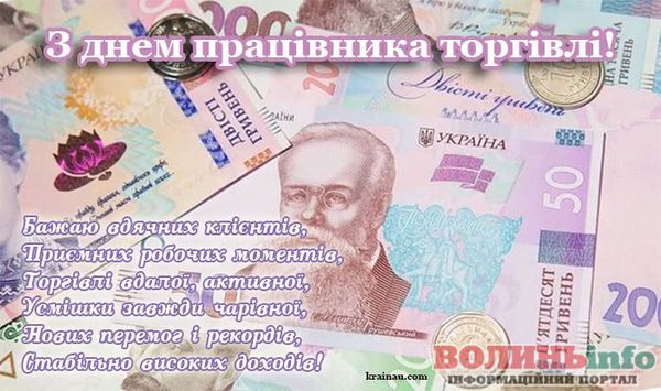 Зі святом! Нехай Україна славиться своєю торгівлею, щоб приносила вона багатство, достаток і допомагала все далі розвиватися і досягати вершин. Нехай розвивається ця галузь, ніколи не залишається на місці та дарує впевненість у майбутньому!