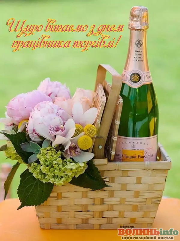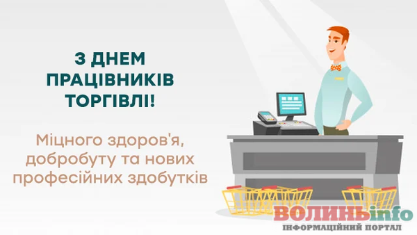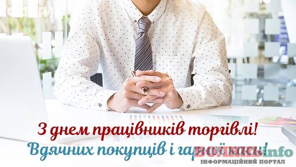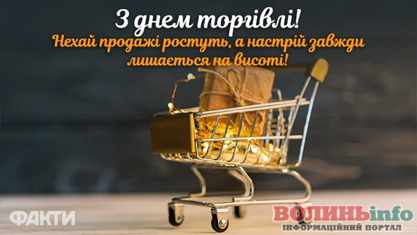 Вітаю з Днем працівників торгівлі України та щиро бажаю якісних товарів на полицях, які неодмінно будуть користуватися чудовим попитом. Гарного настрою для роботи та повного взаєморозуміння з людьми. Нехай діяльність знаменується успіхом і хорошим прибутком, нехай життя дарує масу приємних вражень і чудес.