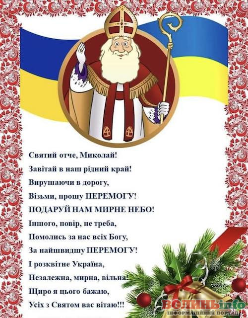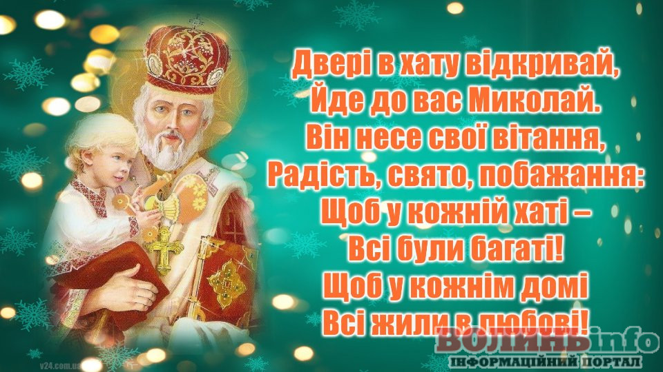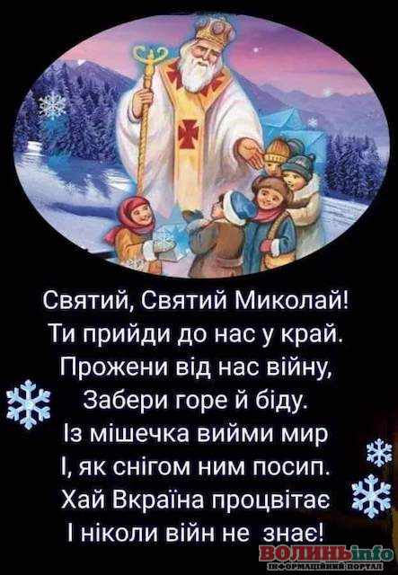 Нехай опікун Святий Миколай, оберігає вас вдень і вночі, завжди приходить на допомогу в матеріальних й духовних потребах.