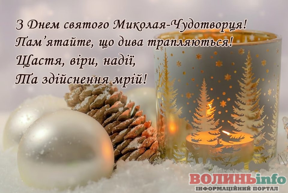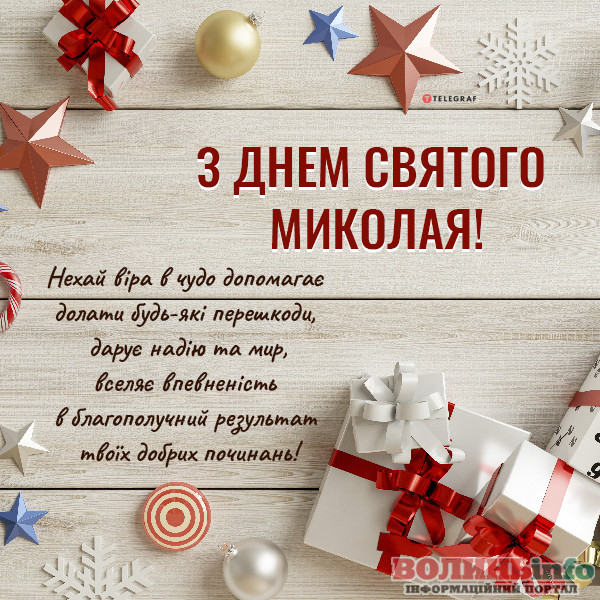 З днем Святого Миколая. Бажаю здоров’я, миру, щастя, любові, надії, удачі і благополуччя. Нехай в цей день віра серця стане міцнішим, а життя твоє – яскравіше і дивовижніше!
