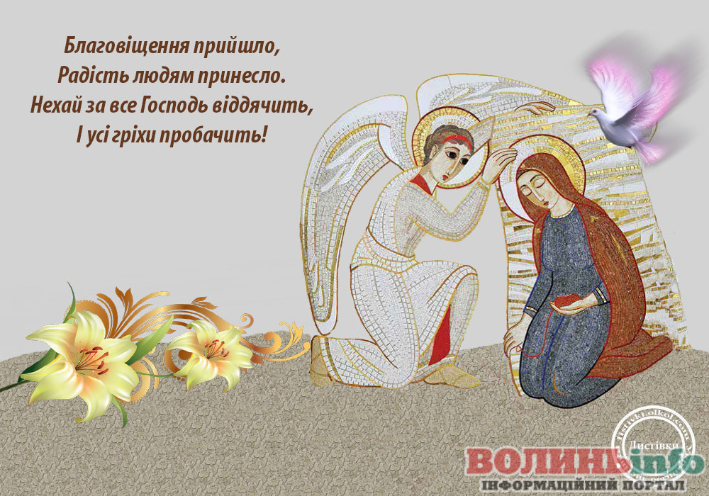 З прекрасним святом — Благовіщення! Хай буде удача, гармонія, спокій у душі, мудрість в голові, любов, почуття до близьких. Сумніви геть, адже життя — прекрасне, і треба жити з відкритою душею. Творити добро, молитися, бути щирим, і слідувати своїм мріям.