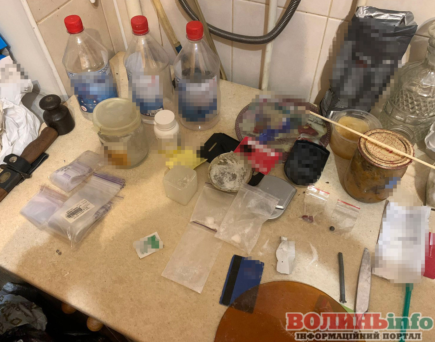 Поліцейські провели обшуки за місцем проживання фігурантів та у підвальному приміщенні. Під час слідчих дій виявили та вилучили амфетамін, прекурсори для виготовлення амфетаміну, обладнання (скляні трубки, колби, холодильник, мірні ємності, термометр), електронні ваги, зіпакети, ємності з нашаруванням білого кольору, засоби зв’язку та інші речові докази. Усе вилучене поліцейські направили до Волинського науково-дослідного експертно-криміналістичного центру МВС України для проведення дослідження.