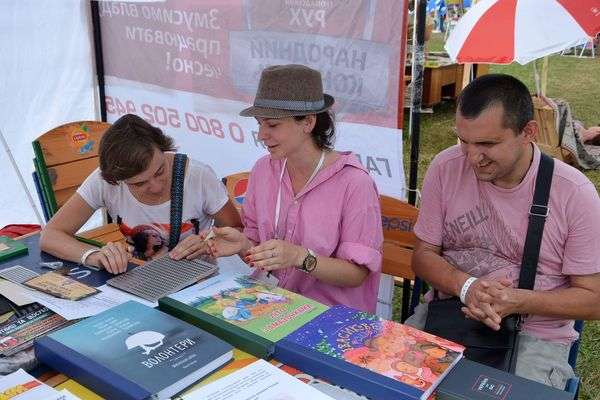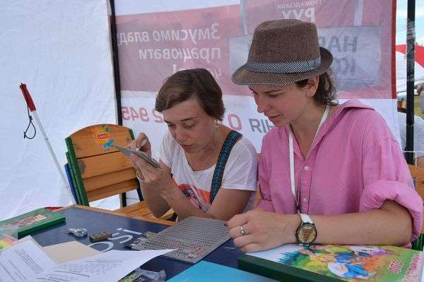 Три дні поспіль наша команда разом із волонтерами жила вільним і насиченим фестивальним життям. Ми не лише знайомили охочих з літературними виданнями для незрячих людей, які читають шрифтом Брайля, але й презентували чудовий путівник Україною “Україна для вас”, виданий в партнерстві банком ПУМБ та журналом “L’Officiel Ukraine“. Усі охочі і небайдужі могли ознайомитись і придбати це ексклюзивне видання для себе чи друзів, щоб насолоджуватися незабутніми місцинами України та дати змогу Braille Studio придбати необхідне потужне обладнання для подальшого друку якісної продукції шрифтом Брайля для дітей і дорослих з усієї України. Це соціально відповідальний партнерський проект, оскільки усі одержані кошти від продажу путівників підуть виключно на придбання обладнання для друку шрифтом Брайля, сучасного принтера BrailleBox. Вартість одного примірника путівника “Україна для вас” становить 250 грн, а нам потрібно продати ні багато ні мало 2 500 примірників, щоб закупити необхідне обладнання. Починаючи з травня цього року, вдалося реалізувати лише трохи більше 500.