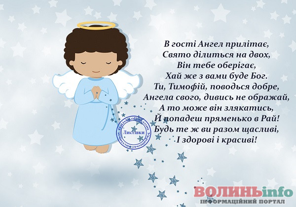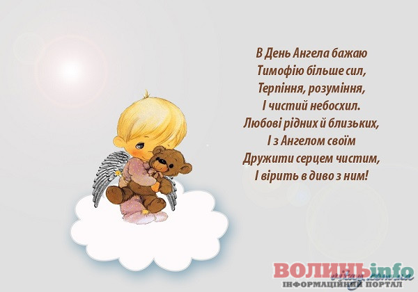 Дорогий Тимофій! Нехай твій ангела почує всі твої молитви і допоможе впоратися з усіма негараздами на життєвому шляху! Будь стійким у своїй вірі, допомагай нужденним, прощай людям їх помилки і будь милосердним по відношенню до близьких. Зі святом тебе!