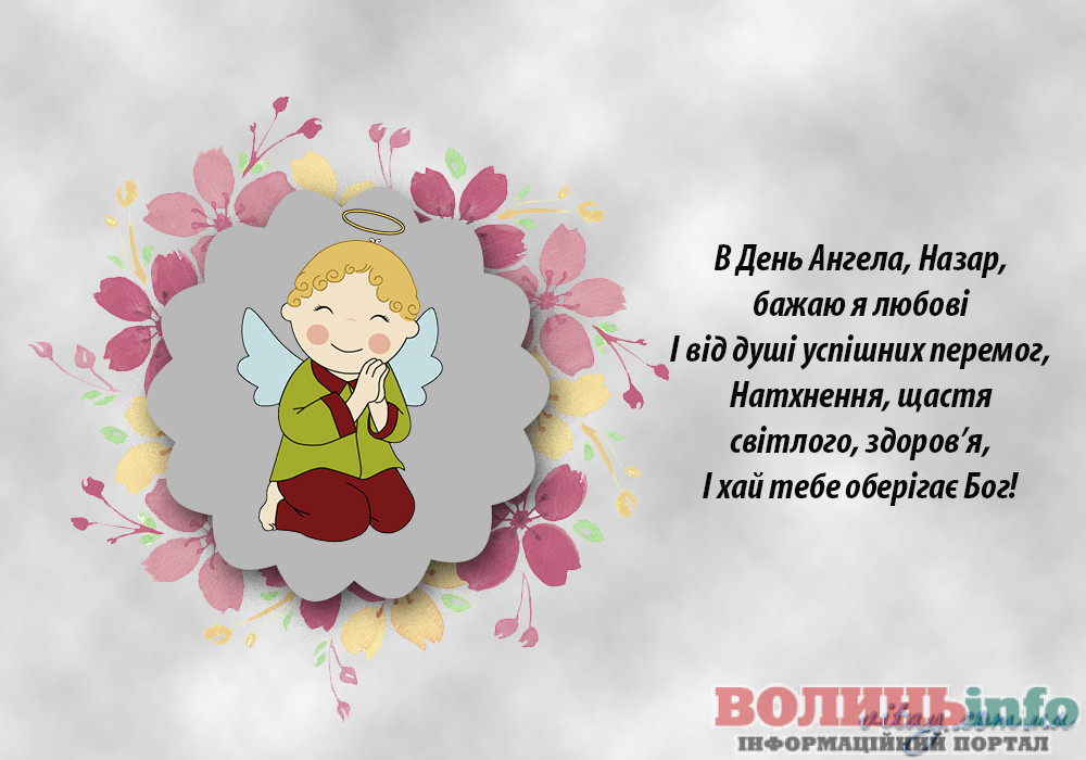 В цей святковий день вітаю Назара з Днем Ангела. Бажаю йому завжди відчувати підтримку свого ангела-хранителя, а також друзів та близьких. Нехай кожен день посміхається доброю звісткою, а ніч знімає всю втому і забирає неприємності.