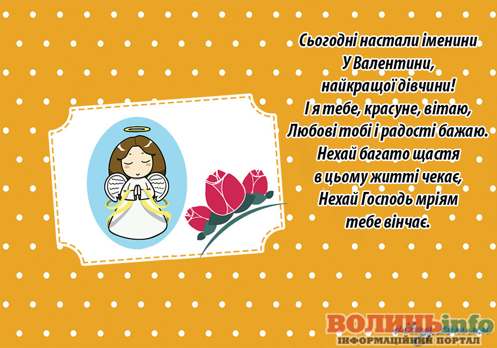 14 лютого свої іменини святкують чоловіки з ім’ям Валентин та жінки з ім’ям Валентина.