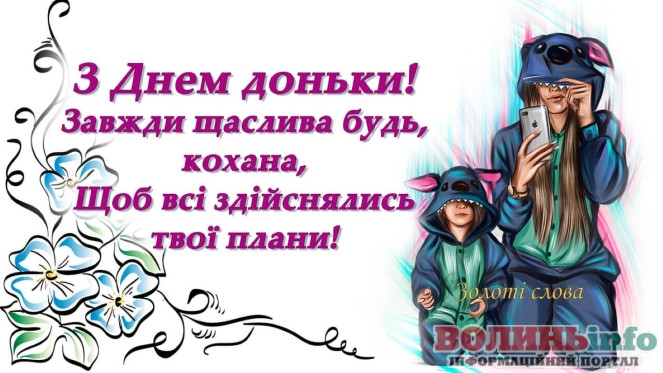 У цей чудовий день хочеться побажати всім дочкам щастя, здоров’я, кохання, успіхів у всіх починаннях! Нехай ваші очі завжди сяють щастям, а на обличчі ніколи не зникає посмішка!
