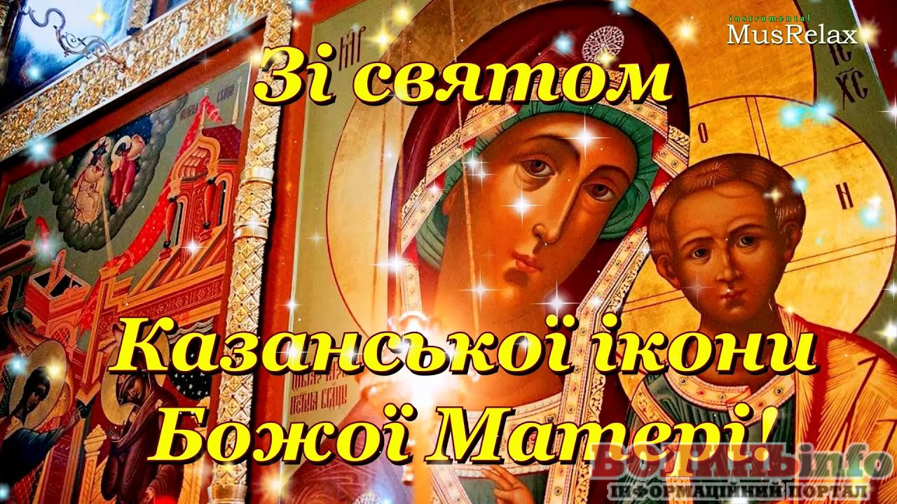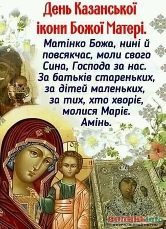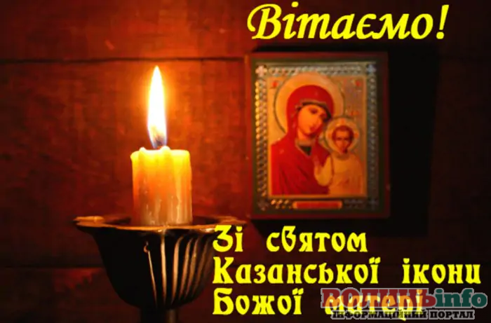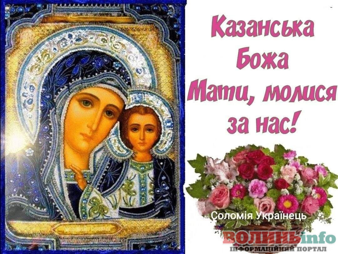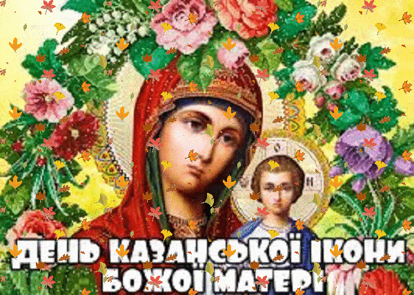 Вітаю з Днем Казанської ікони Божої Матері! Бажаю, щоб під покровом Захисниці Нашої жив український народ у мирі і добрі. Щоб святість була і в помислах і в діях. Благовоління долі, радості і успіху вам в будь-якій ситуації, кожен день і все життя!