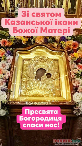 Вітаю Вас зі святкуванням Дня Казанської ікони Божої Матері! Бажаю віри, єднання з Вашими рідними і близькими. Хай Господь береже Вас на всіх шляхах Вашого життя по невідступному заступництву Пресвятої Богородиці!