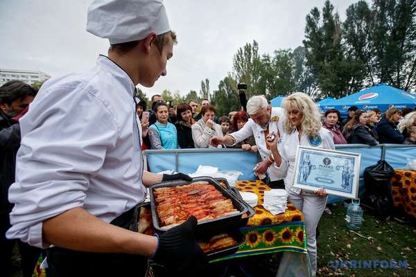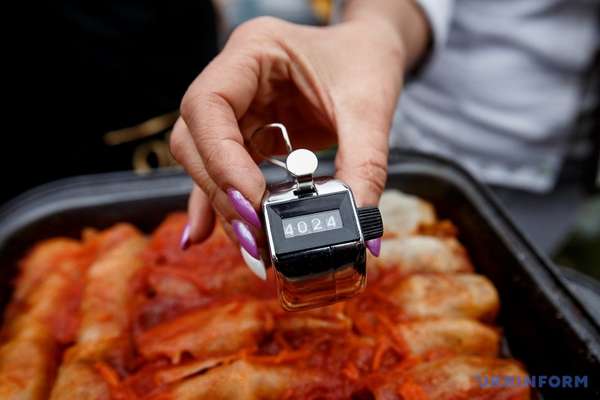 Як повідомляє кореспондент Укрінформу, представник національного реєстру рекордів України Лана Вєтрова зафіксувала рекордну кількість голубців, приготовану в одному місці, і вручила Запоріжжю відповідний сертифікат.