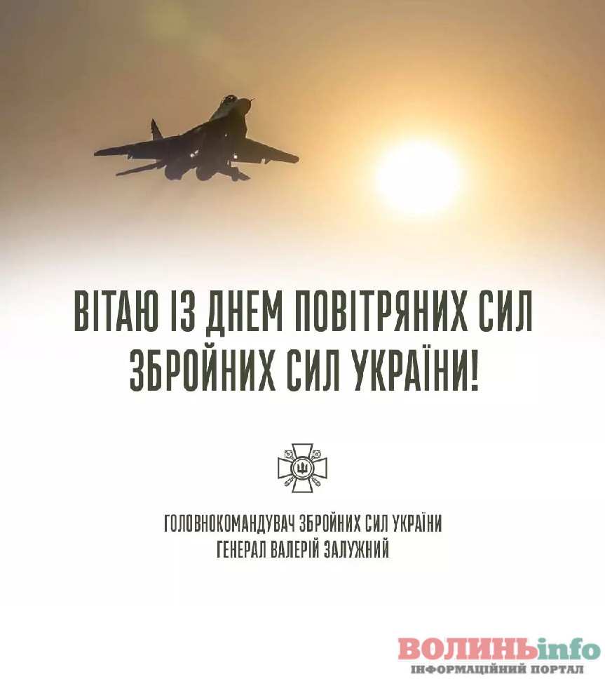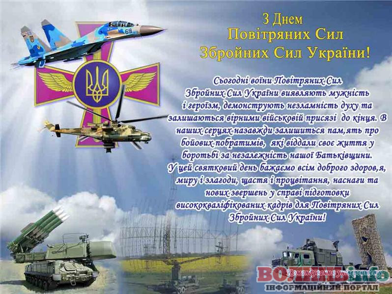 Вітаю з Днем Повітряних Сил ЗСУ і щиро бажаю завжди володіти потрібною інформацією, завжди контролювати будь-яку ситуацію, завжди знати вірний курс успіху, завжди бути на висоті — висоті своєї майстерності та мужності.