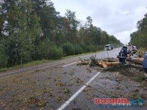 о 10 год. 37 хв., надійшло повідомлення, проте, що на 288км. автодороги М07 (Сарни-Київ) на проїжджу частину в наслідок сильного вітру впало три дерева та перешкоджають руху транспортних засобів.