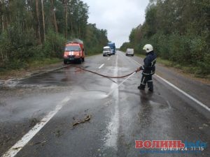 24 вересня о 10 год. 18 хв., надійшло повідомлення до пожежно-рятувальної частини Сарн, проте, що на 315км. автодороги М07 (Сарни-Ковель) на проїжджу частину в наслідок сильного вітру впало дерево та перешкоджає руху транспортних засобів.