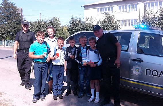 Під час патрулювання правоохоронці наголосили дітям про необхідність дотримання Правил дорожнього руху. На згадку школярі отримали від правоохоронців невеличкі сувеніри.