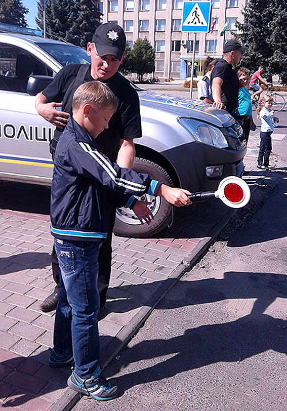 Діти разом із правоохоронцями перевіряли документи у водіїв транспортних засобів, ознайомилися з принципом дії газового аналізатора «Драгер», який визначає вміст алкоголю у видихуваному повітрі.