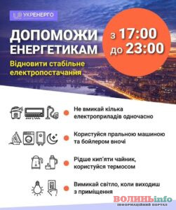 Укренерго закликав українців економити електрику з 8:00 до 11:00, а далі – з 17:00 до 23:00.