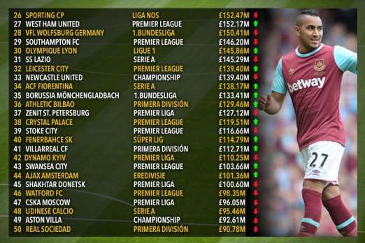 Два українських футбольних клуби потрапили у топ-50 найдорожчих клубів світу