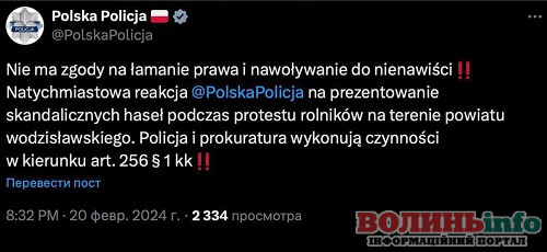 Польська поліція затримала фермера, який тримав прапор СРСР і плакат адресований до Путіна. Йому пред’явлено дві звинувачення: за розпалювання та підтримку агресивної війни Путіна та пропаганду тоталітаризму.