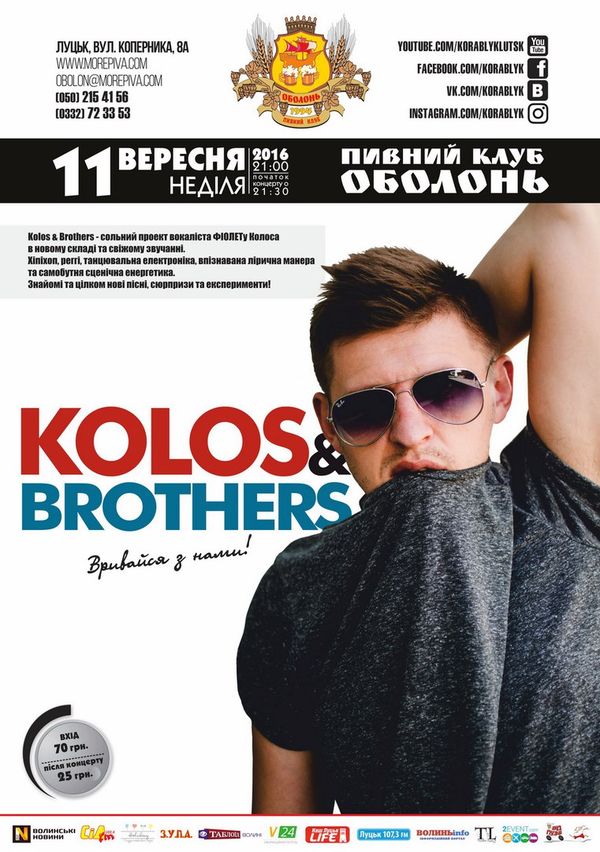 Лучан кличуть побувати на концерт «Kolos & Brothers» – сольний проект вокаліста гурту «Фіолет» Сергія Мартинюка.