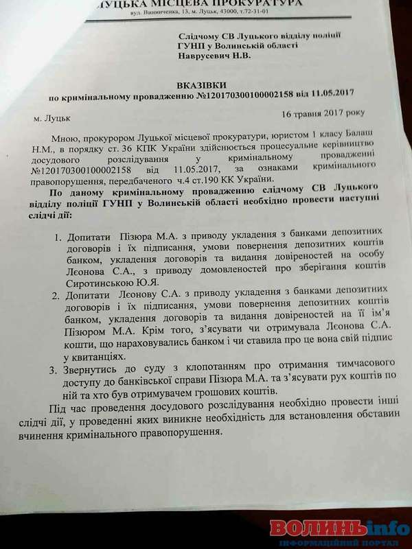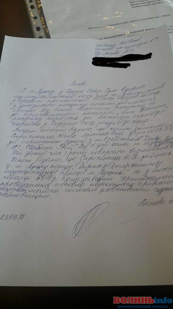 Жінка написала заяву на ім’я керівника місцевої Київської прокуратури, заяву скерували на Луцьк за підслідністю.