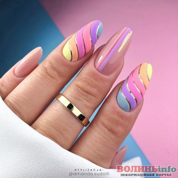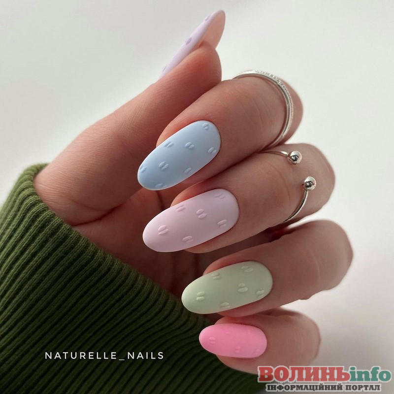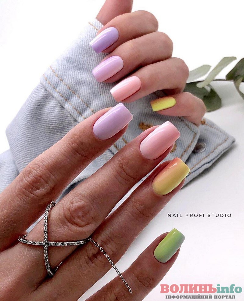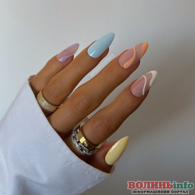 Весняний різноколірний манікюр 2023. В тренді будуть м’ятний, фісташковий, небесно-блакитний, лавандовий, молочний і карамельний відтінки, і всі вони можуть запросто “ужитися” в одному манікюрі.