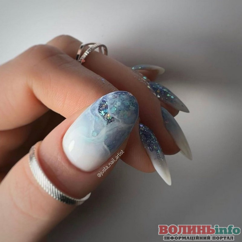 Небесна блакитність. Найвесняніший відтінок манікюру-2023 — ніжно-блакитний, який прийшов на зміну насиченому синьому.