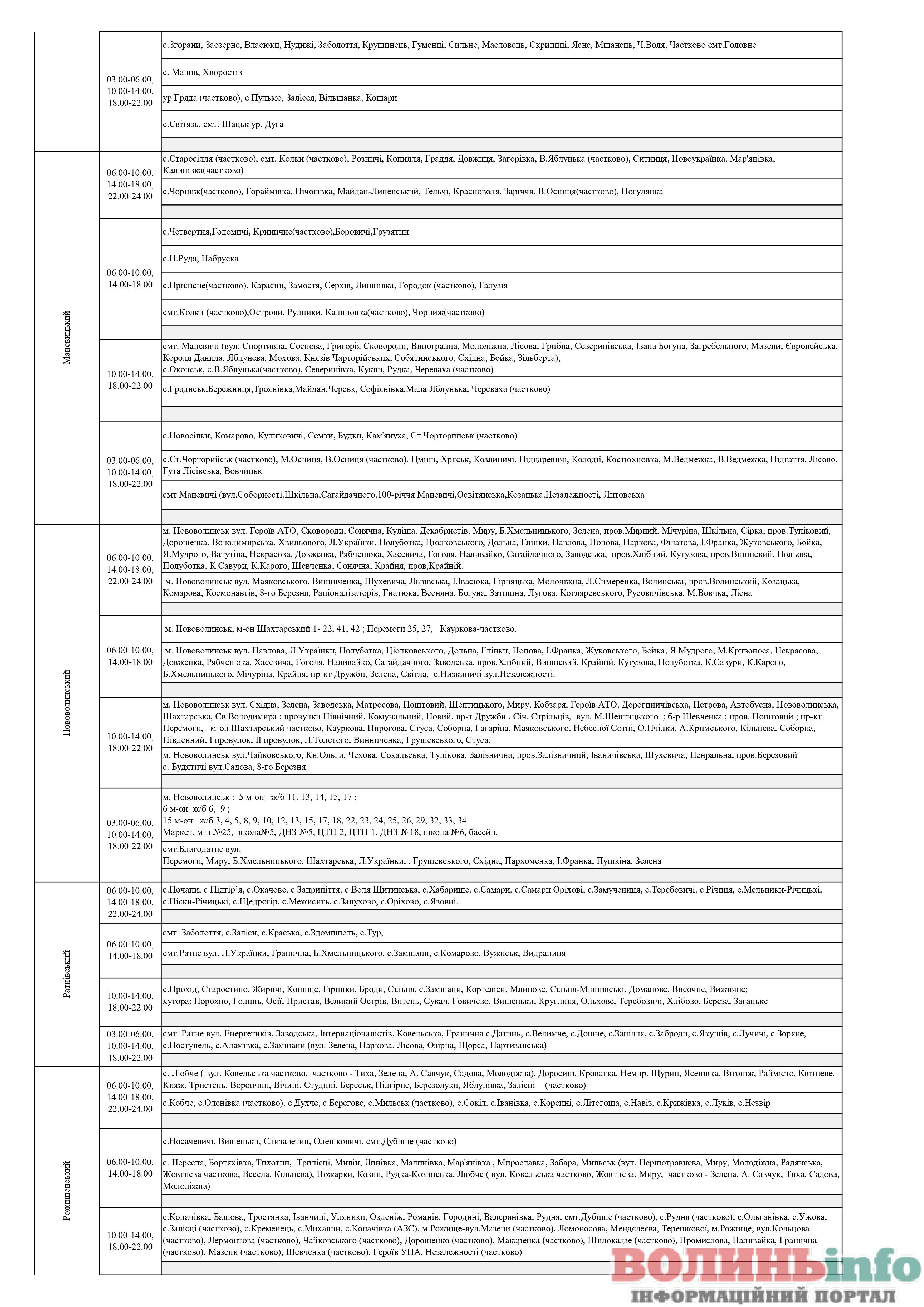«Волиньобленерго» надало графік, згідно якого кожен може дізнатися коли у нього у домівці не буде світла.