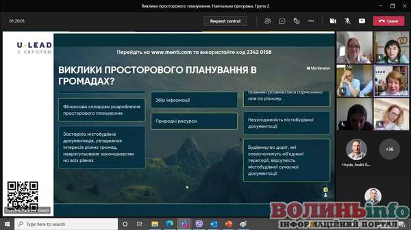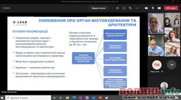 Нинішня зустріч була присвячена викликам просторового планування. Досвідчені експертки Катерина Степчук та Тетяна Данилів обговорили разом з представниками громад основні проблеми ТГ та виклики у просторовому плануванні, методи розв’язання проблем та реагування на ризики у просторовому плануванні, різні види завдань з просторового планування, відповідні формати та документацію на них тощо.